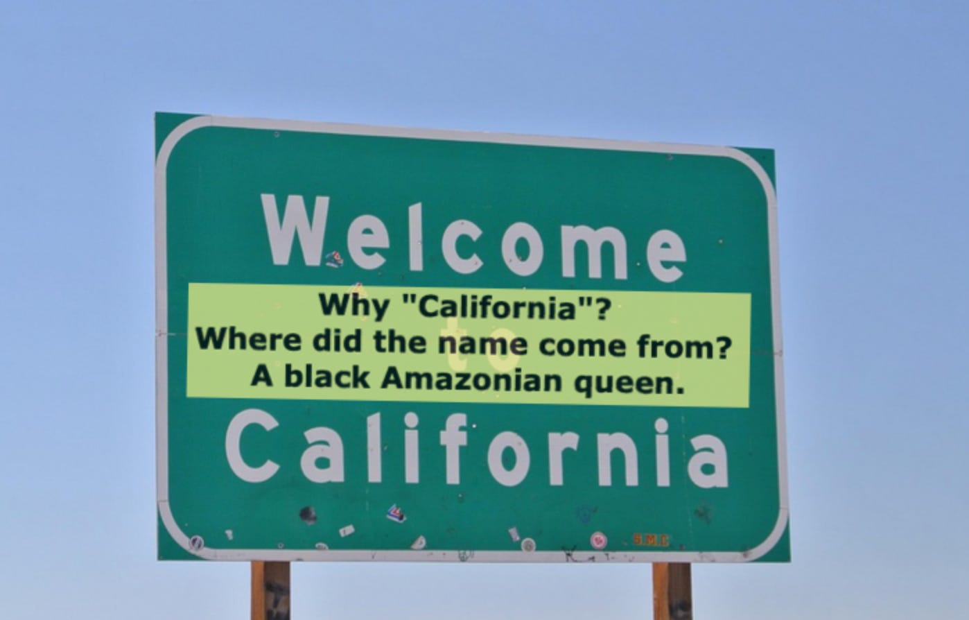 “. . . the name "California" traces its origin to a centuries old story about an island, full of gold, run by black women who fed men to their pet griffins. Like other Amazonian legends, the island of California was a place filled with strong, self-sufficient women who solicited male attention completely on their own terms.” –From PBS SoCal