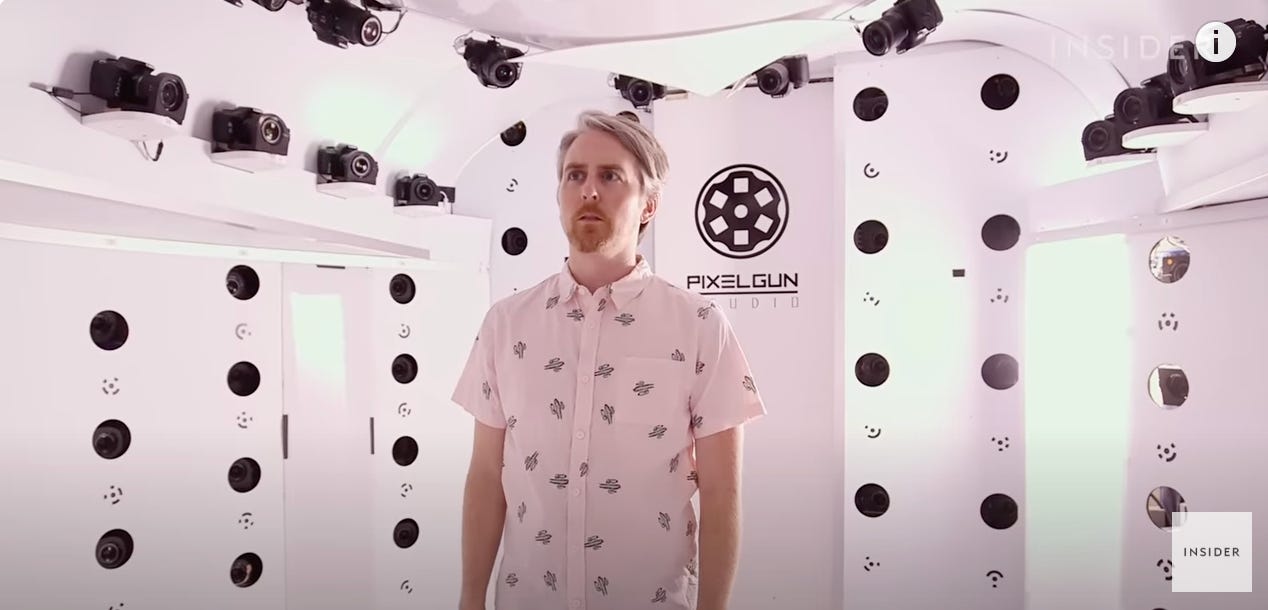 For facial mapping, I went to a place near the production studio where they specialize in doing that. The facial mapping setup is inside a mobile trailer. This trailer has gone all over the country and has mapped virtually every NBA player.